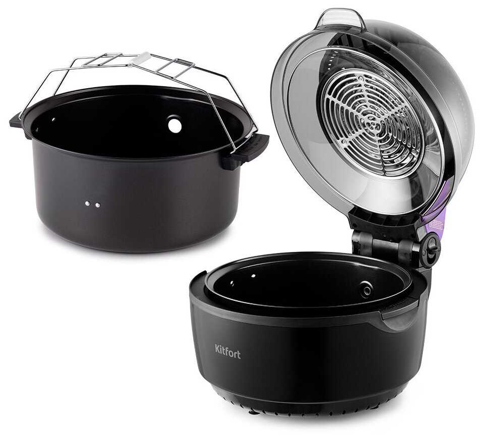 - + Быстрое приготовление,съемная чаша,дополнительная решетка,вертиль и корзина для приготовления картошки фри