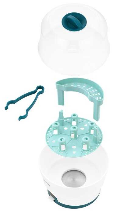 Шикарная вещь, жалею, что не купила со старшими детьми. Суперпроста в использовании. В комплекте идут удобные щипцы. Пластик тактильно приятный, посторонний запах отсутствовал. У меня одновременно вмещаются либо все три бутылочки со всеми комплектующими, либо две бутылочки и молокоотсос. Так что он достаточно вместительный, в том числе за счёт наличия верхнего яруса. Единственное меня смущает наличие сильного конденсата внутри бутылочек после стерилизации, находясь внутри они не сохнут. Поэтому я стараюсь сразу же доставать бутылочки на просушку. В целом считаю, что вещь удобная и нужная.