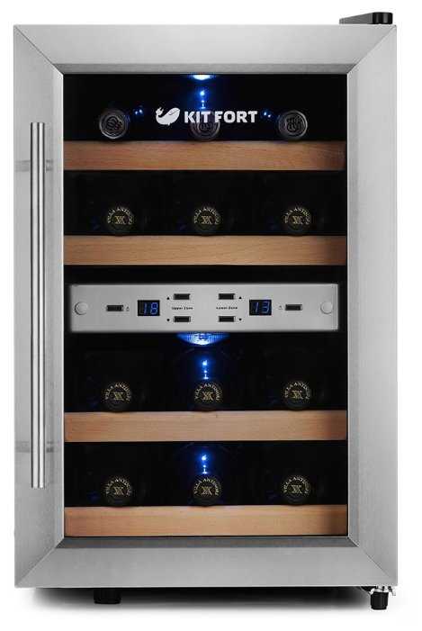 - Вместимость 12 стандартных бутылок (6 в каждой зоне), занимает мало места (ширина ~34,5 см, высота ~52,5 см).