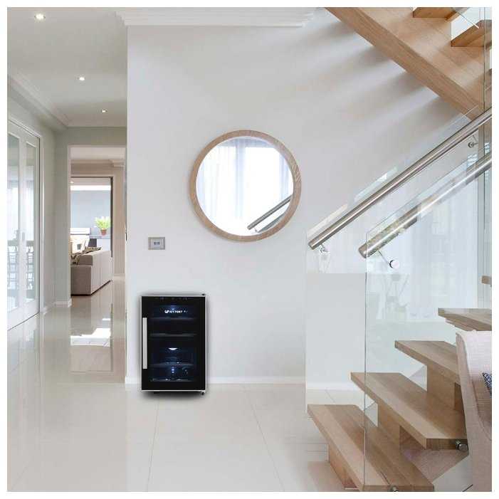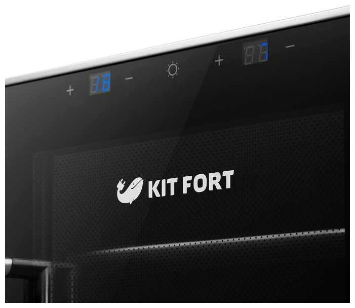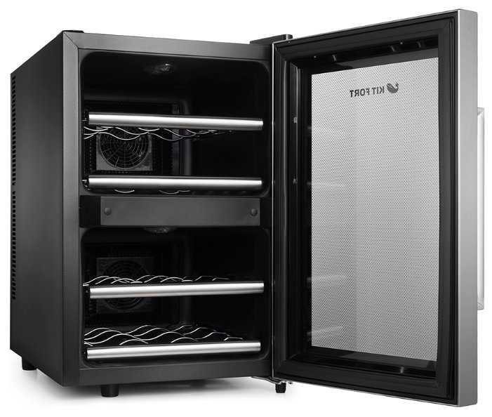 Купили в подарок винный шкаф Kitfort KT-2405. Внешне - выглядит стильно, затемненное стекло, синяя подсветка, ее можно выключить. По вместимости - я считаю, что это оптимальный размер. Есть две камеры, в которых можно поддерживать оптимальную температуру для белого и красного вина. Именинник несказанно рад!