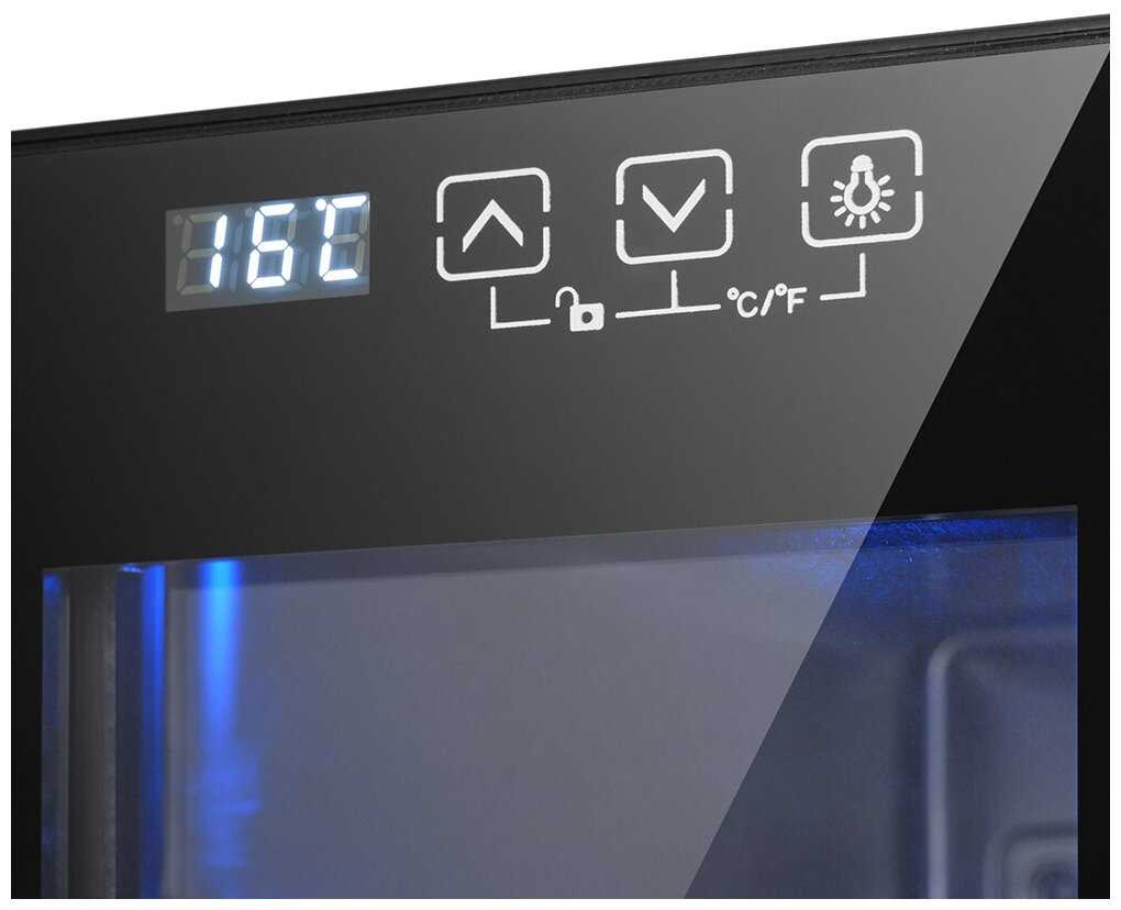 - Диапазон 8-18°C с шагом 1°C, держит температуру точно даже при полной загрузке или с одной бутылкой, проверено термометрами.