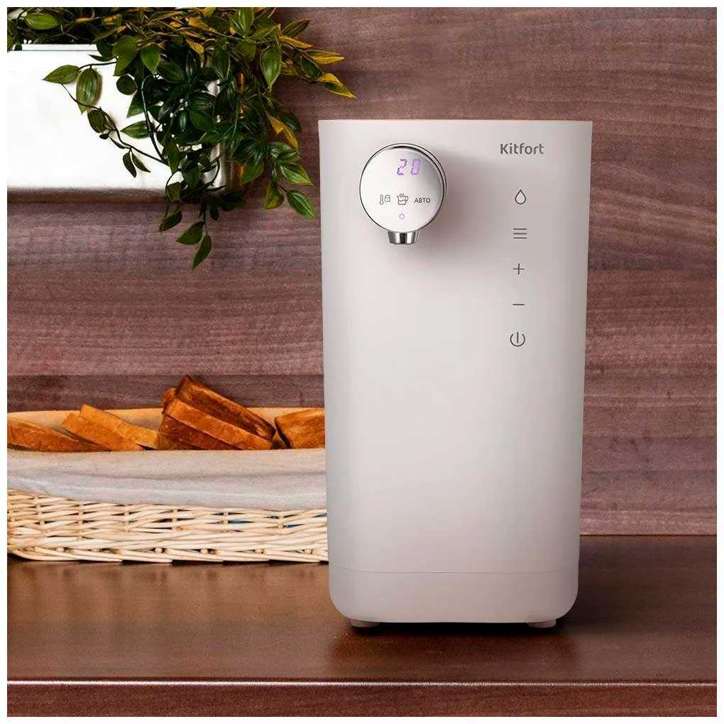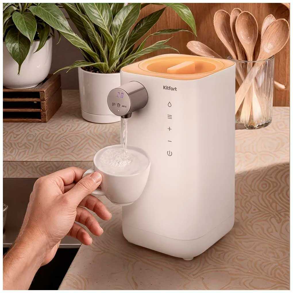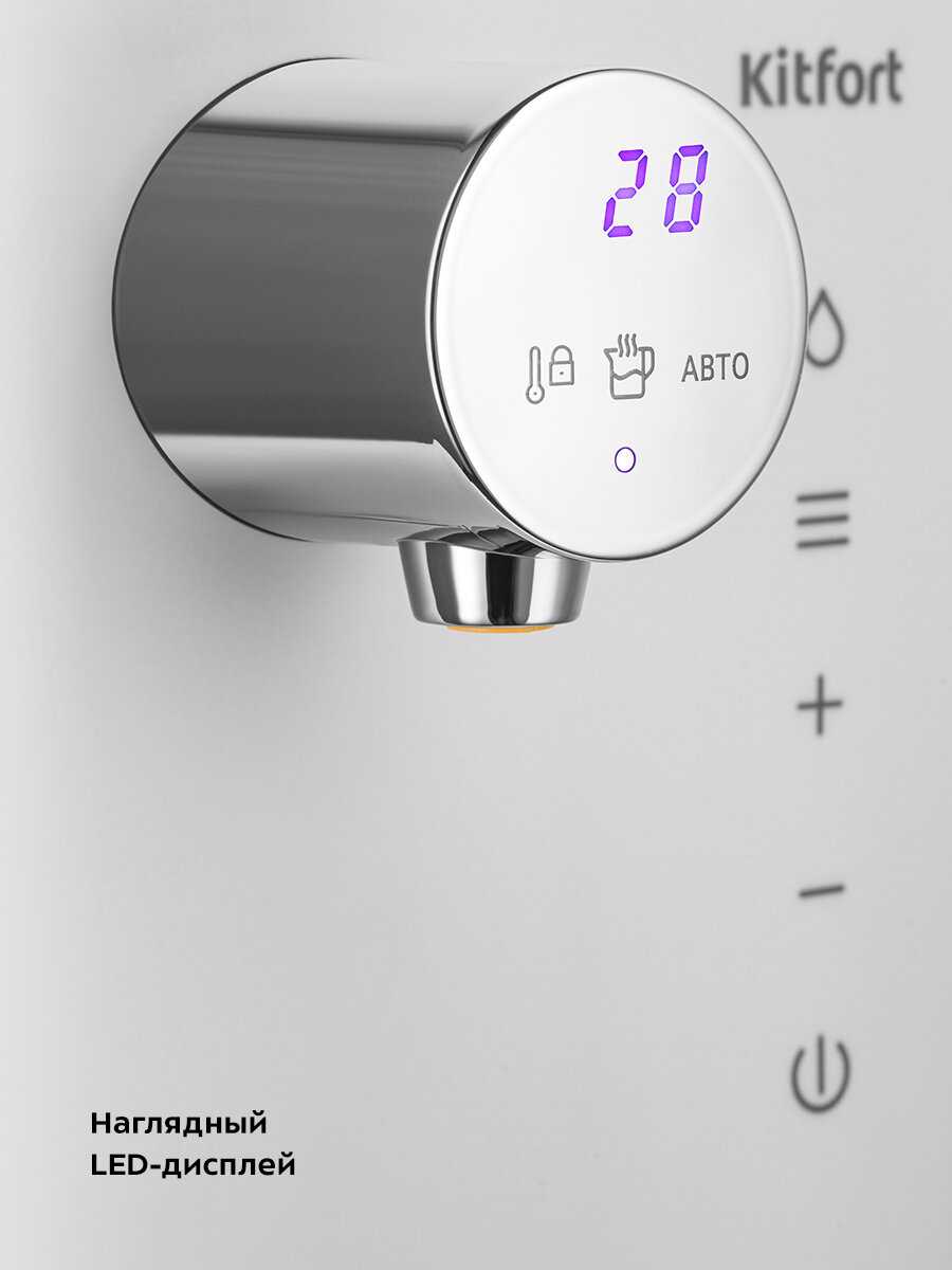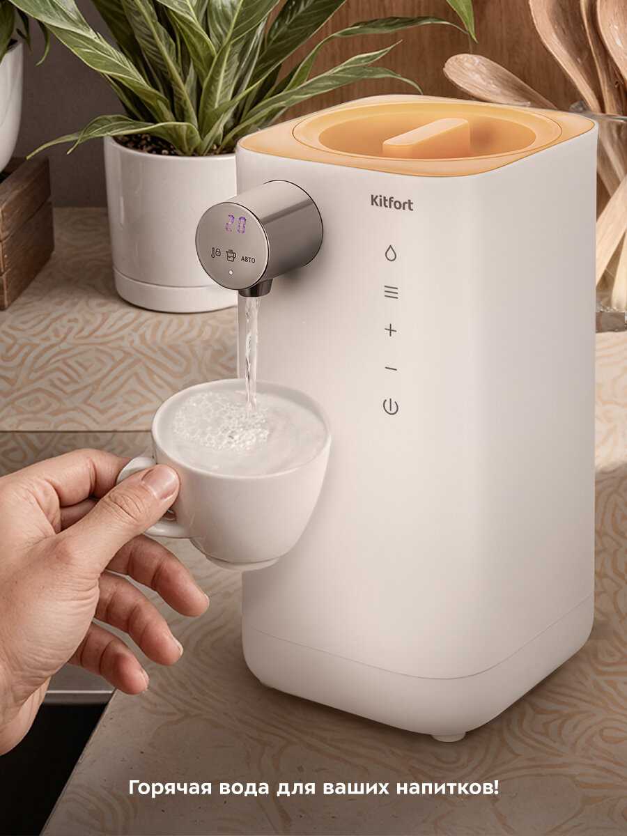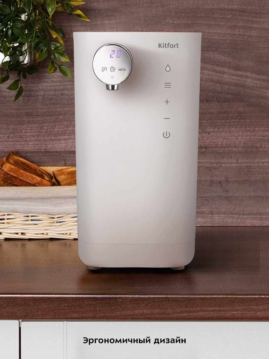Брала терпомод для кофейни, то есть работает он по 12 часов каждый день и все в порядке. Температуру набирает быстро, держит отлично. Очень удобно (и важно именно для наших целей) - можно задать температуру, которую он наберет и будет держать - 45, 55, 85 или 95 градусов. Уровень воды видно хорошо. Все управляется просто, интуитивно понятно, вода продается через нажатие двух кнопок. В общем, я в восторге. Но! Я не понимаю, кто придумал сделать такой короткий провод? Он сантиметров 50 максимум 😅 у меня терпомод из-за этого живет в углу возле розетки, как будто он наказан.