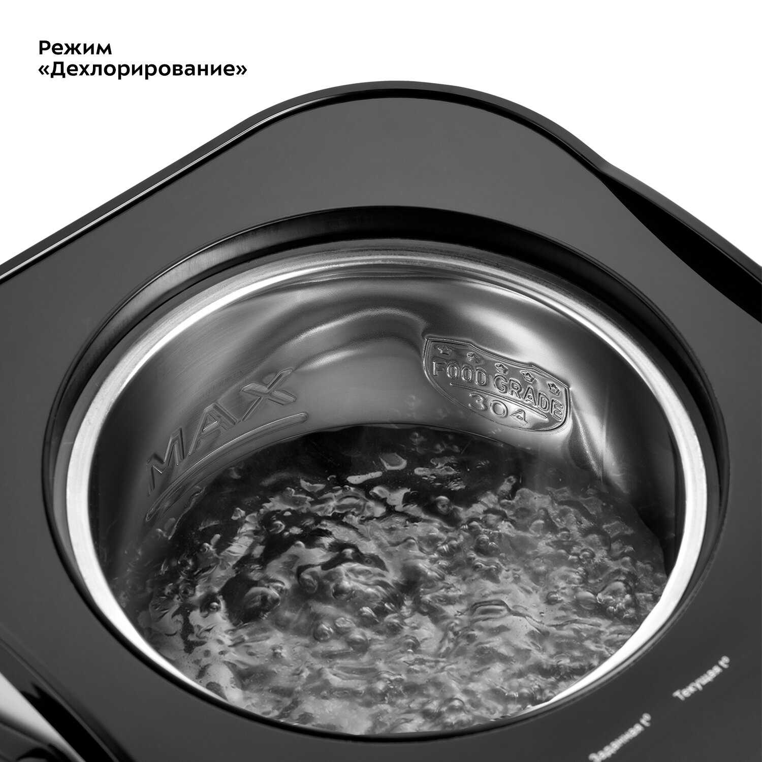 - Режим дехлорирования с длительным кипячением снижает содержание хлора в воде, улучшая вкус напитков без отдельной фильтрации.