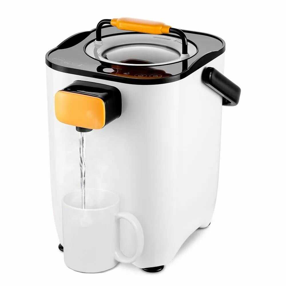Габариты и размещение на кухне. Абсолютное большинство пользователей отмечают компактные размеры термопота как ключевое преимущество. Аппарат описывается как незначительно превосходящий по размеру стандартный электрочайник, что делает его идеальным решением для небольших кухонь с ограниченным рабочим пространством. При этом, несмотря на малые внешние габариты, внутренний объем в 2 литра оценивается как достаточный для одного-двух человек или небольшой семьи; пользователи подчеркивают, что такой объем предотвращает застаивание воды, так как она расходуется быстрее. Наличие ручки для переноски добавляет удобства, позволяя легко перемещать устройство. Некоторые пользователи, однако, выражают пожелание о наличии моделей с большим литражом или в разных цветовых решениях для лучшего соответствия интерьеру.