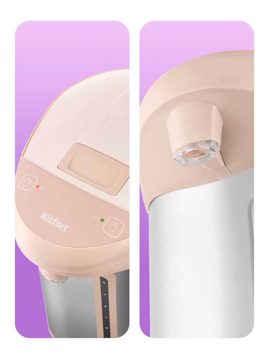 Приобрела термопот Kitfort КТ-2529 и очень довольна покупкой. Устройство имеет стильный дизайн, который отлично вписался в мою кухню, а сочетание пластика и нержавеющей стали выглядит премиально. Особенно порадовала функциональность - можно наливать воду двумя способами: кнопкой или просто прислонив кружку к специальному переключателю. Двойные стенки эффективно сохраняют тепло, что позволяет реже включать нагрев и экономить электроэнергию. Единственный небольшой минус - язычок для поднятия крышки кажется немного хлипким, но в целом термопот работает безупречно, поддерживает нужную температуру и быстро кипятит воду.