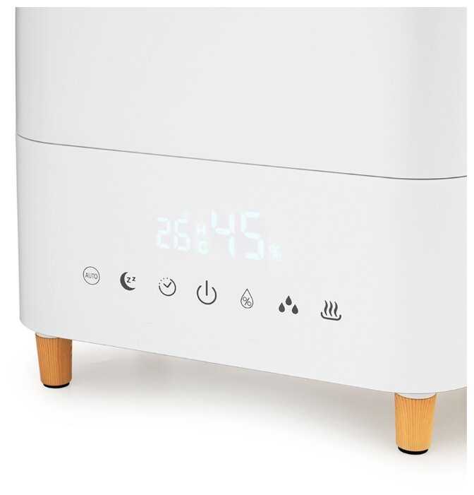 Начнём с простого: красивый дизайн, отлично вписался в интерьер комнаты. Дисплей с информацией не броский, не выделяется на общем фоне увлажнителя.