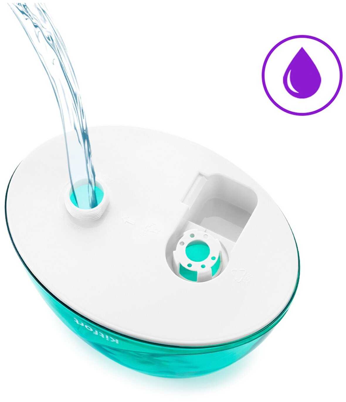 Производитель рекомендует заливать только дистиллированную воду из-за отсутствия сменных фильтров. Использование водопроводной воды приводит к быстрому образованию белого налёта на внутренних поверхностях и мебели рядом с увлажнителем, что требует регулярной очистки резервуара. -