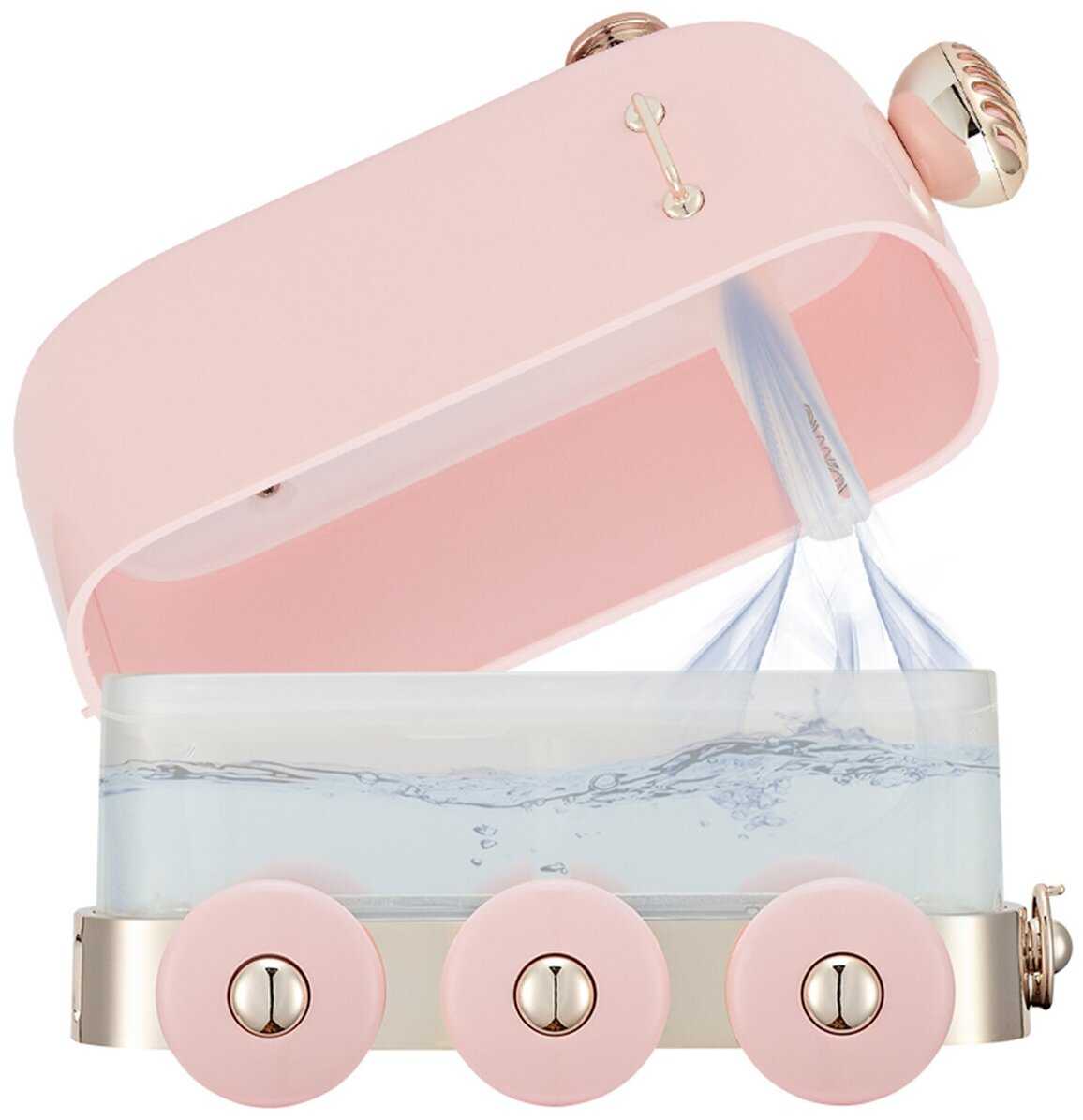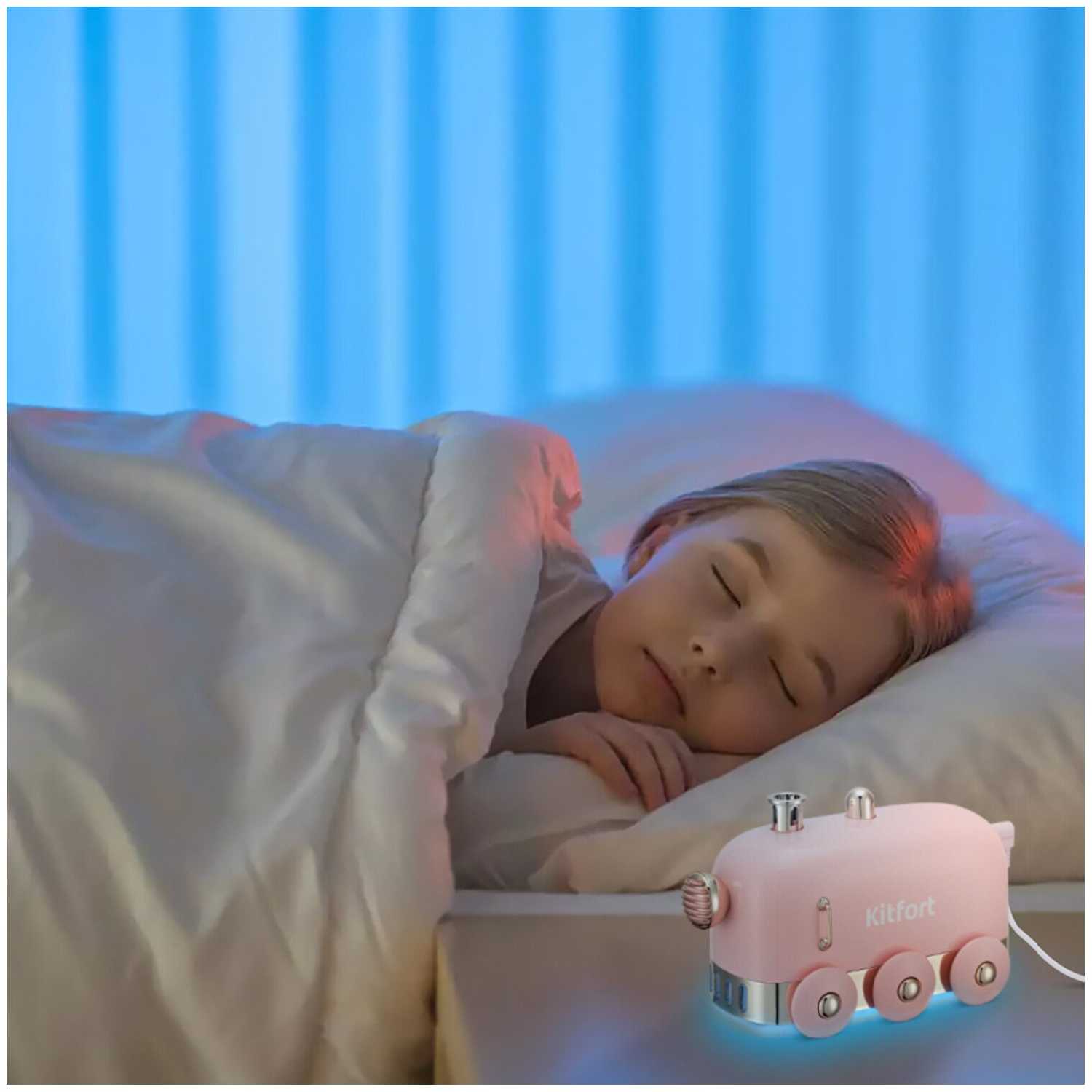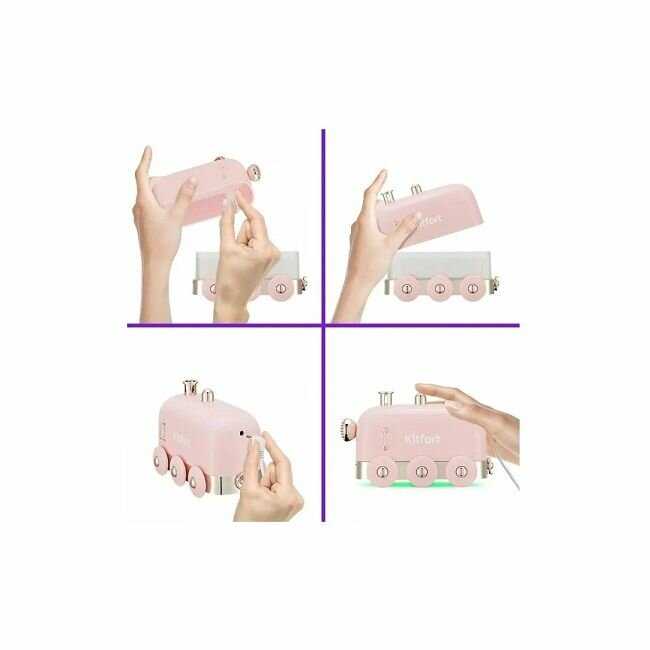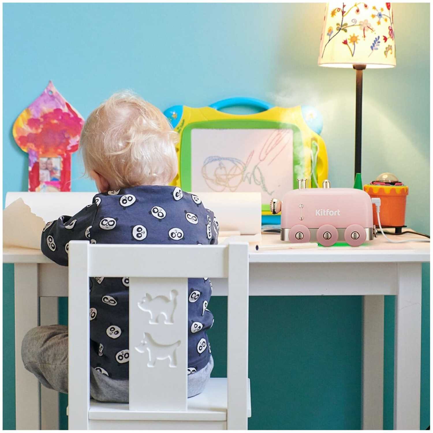 О пользе всё понятно, а приятен для ребенка он именно тем, что выглядит, как игрушка: можно катать на колесиках, при включении паровоз гудит и издает звук движения (не громко, что хорошо), из трубы идет пар, нижняя часть подсвечивается разными цветами(можно использовать, как ночник).