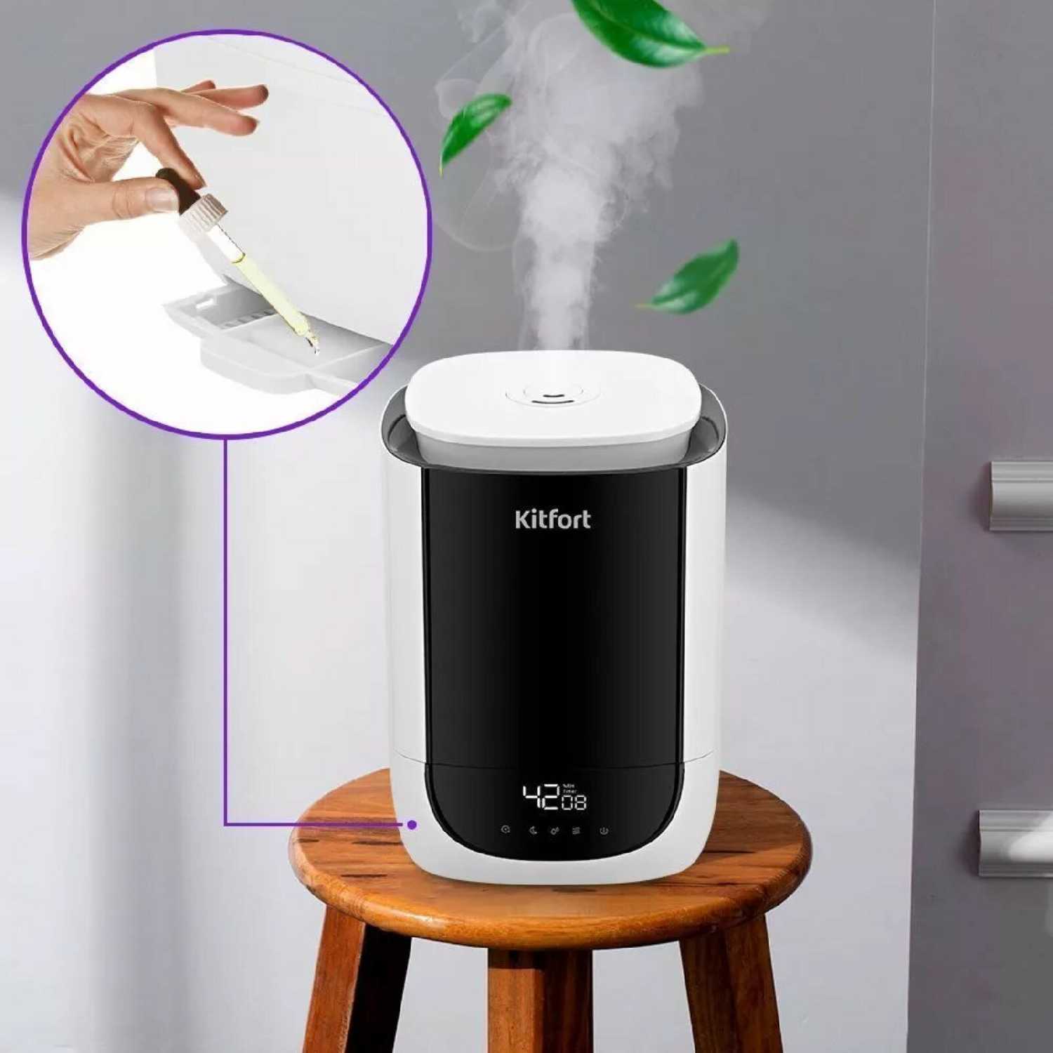У меня уже есть несколько товаров фирмы Kitfort, поэтому решила не отходить от традиций и приобрести увлажнитель этой же фирмы. Он угодил, буквально, всем моим запросам: большой объём резервуара, регулировка необходимой влажности, защита от перегрева и автоотключение при малом количестве воды. (Предыдущий, другой фирмы, просто сгорел из-за того, что не уследили за количеством воды внутри.) Безусловно, приятным бонусом стало отделение для ароматических масел. Теперь дома не только свежо и хорошо дышится, но и приятно пахнет. Всем довольны, спасибо!