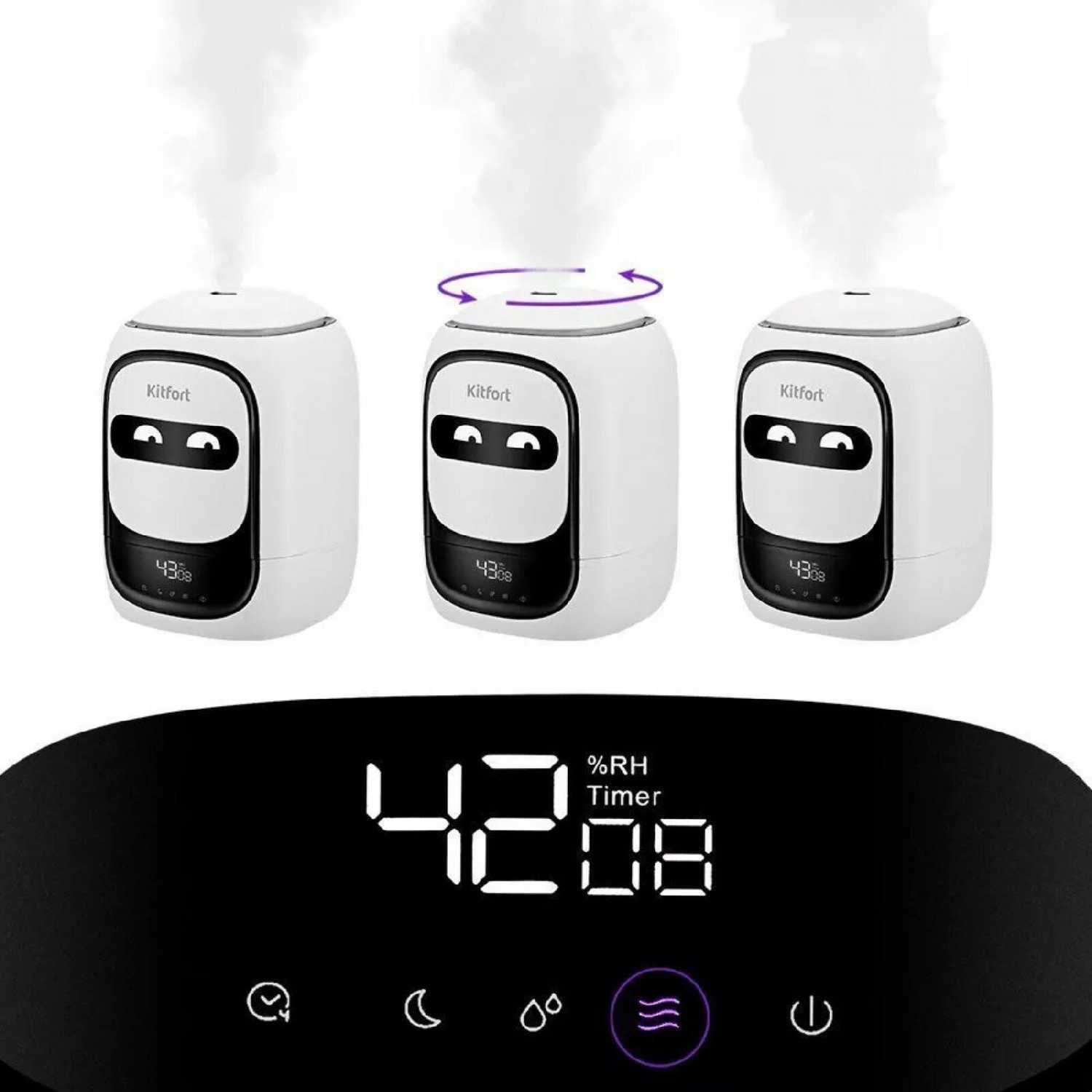 Управление интуитивное с 3 кнопками: ребенок разбирается, пока родитель читает инструкцию. Настройка влажности, режимов, таймера простая. Интерфейс понятный, без лишних функций. Пользователи хвалят легкость для всех возрастов. -
