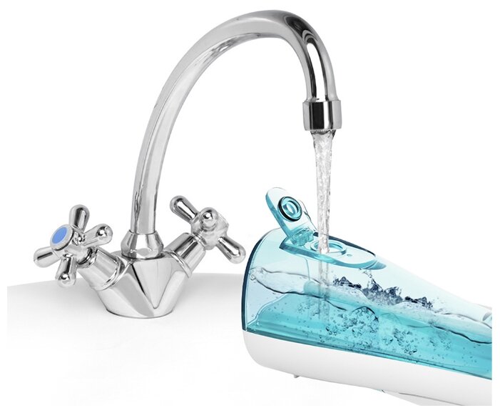 - За чистку приходится наполнять контейнер два раза, но это даже за минусом не назвать, так как объем говорит сам за себя. Комплектация ирригатора очень удобная, которую можно взять с собой в поездку, и не переживать о размерах.