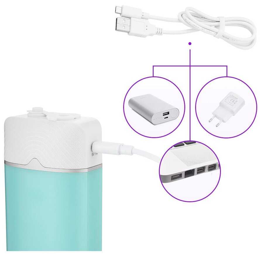 - Стационарная база с резервуаром 500 мл обеспечивает длительную работу без дозаправки. Портативная часть (200 мл) компактна, легко используется в дороге или ванной.
