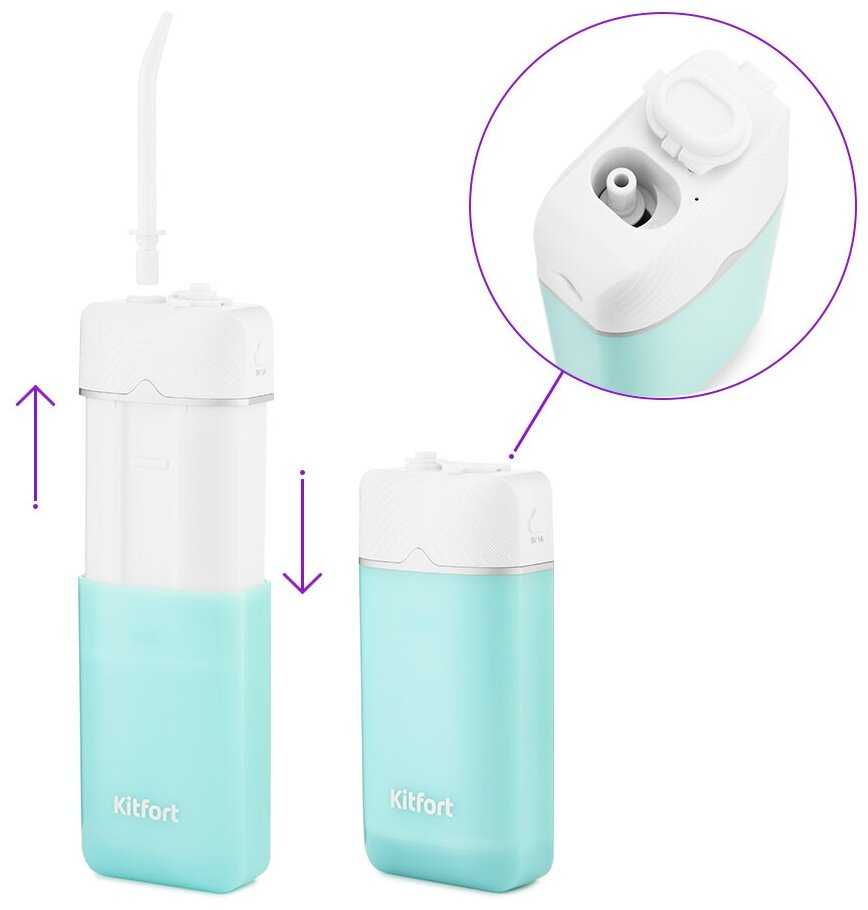 Стильный, компактный, лёгкий в сборке и разборке. Можно брать в путешествие, портативный. Хорошо очищает полость рта. Легко очистить и хранить.
