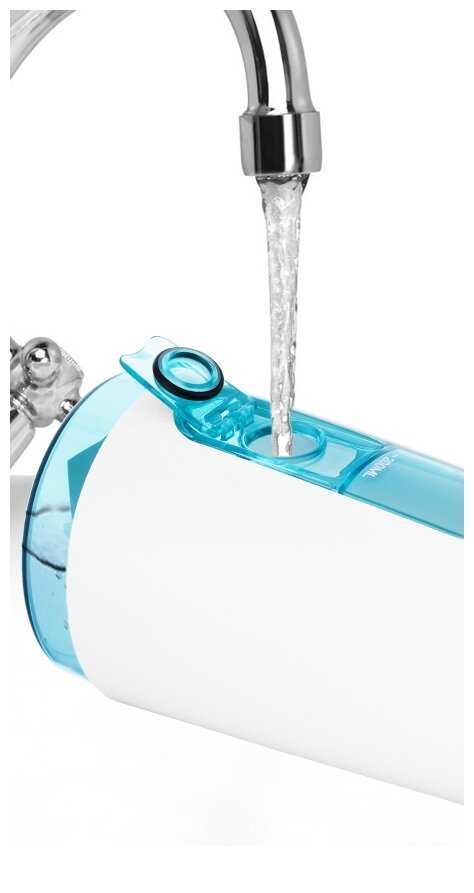 - 280 мл хватает на 1–1.5 минуты непрерывной работы на максимальном напоре. Для полной очистки брекетов или имплантов требуется повторное наполнение.