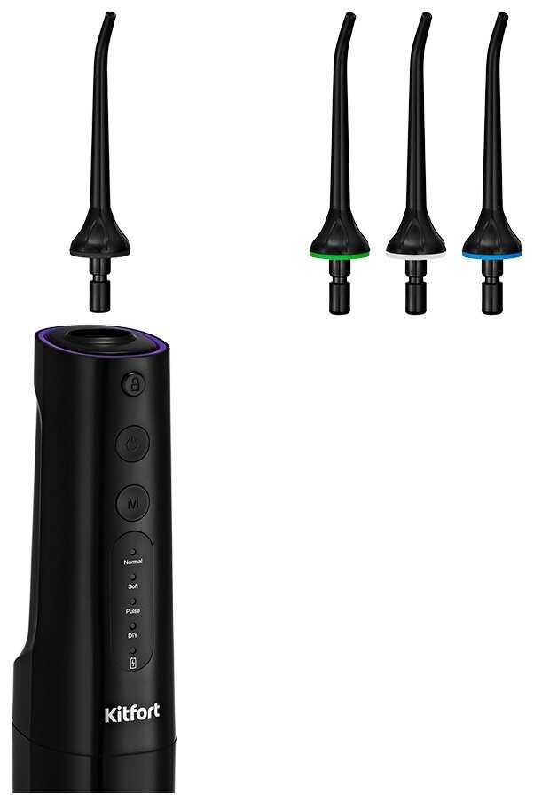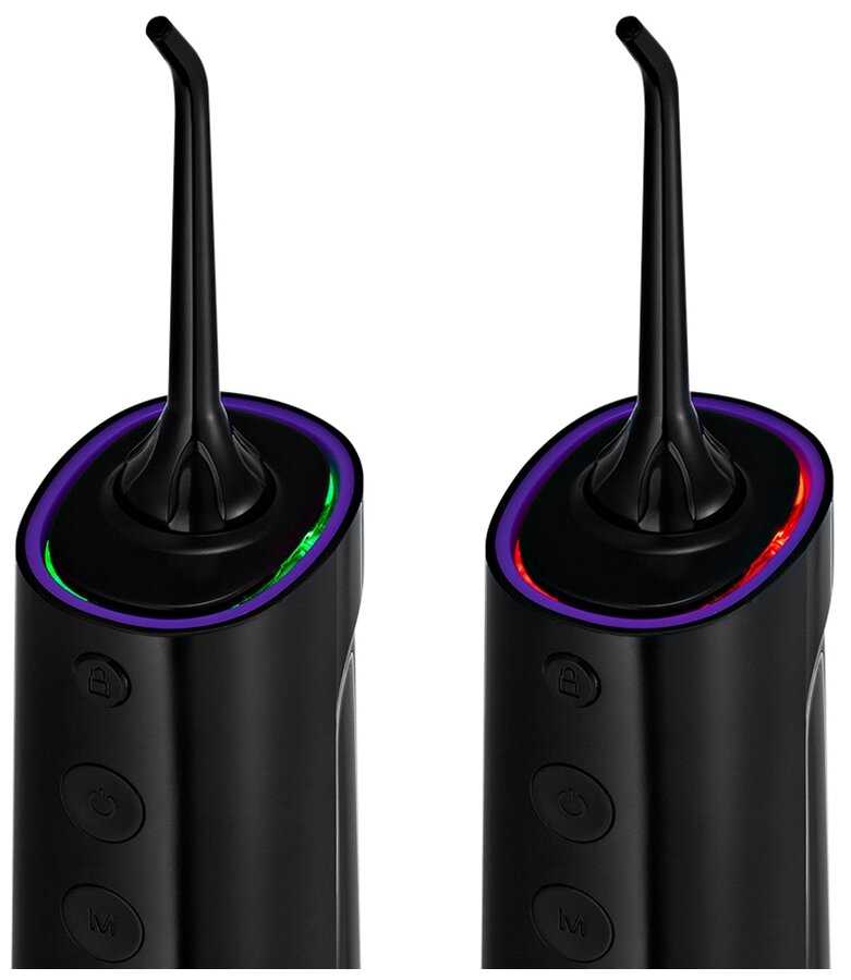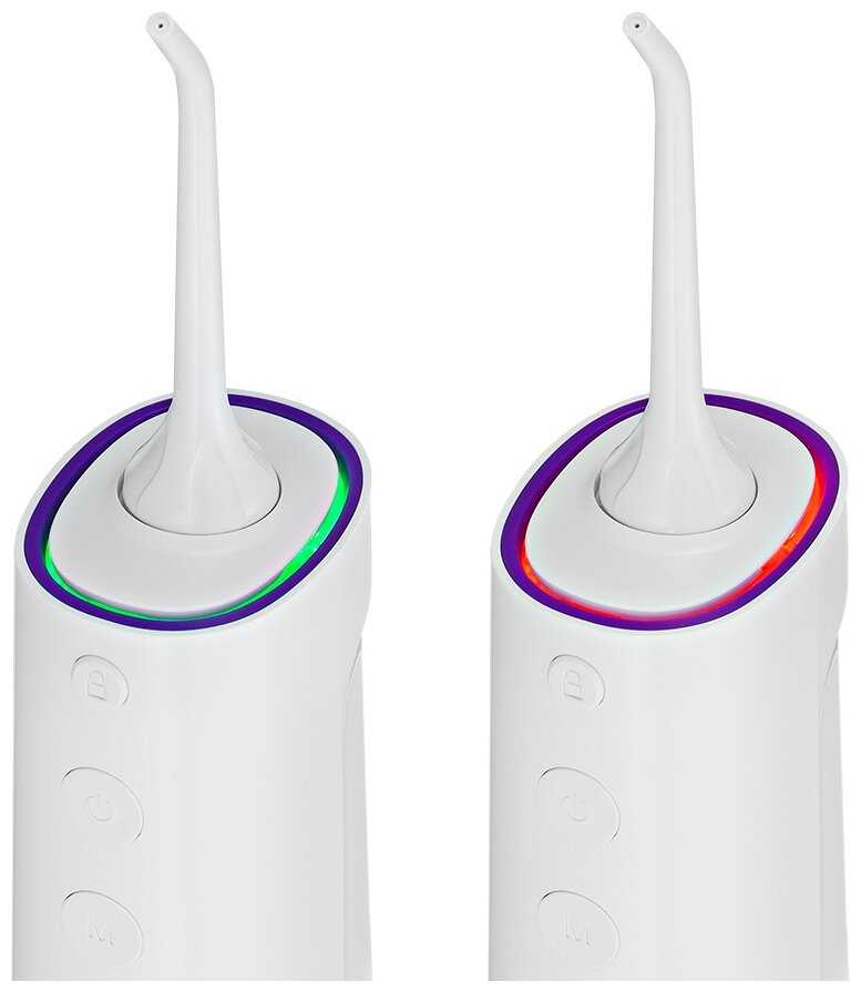 Отличный ирригатор. Со своей задачей справляется полностью. В комплекте есть 4 насадки ( с разным цветом, что удобно для нескольких человек), чехол, кабель для зарядки и очень милый магнитик. Есть несколько режимов, удобно, что в одном из режимов можно интенсивность струи подбирать самому. Достаточно вместительный резервуар для воды, так же долго держит заряд. Покупкой доволен!!