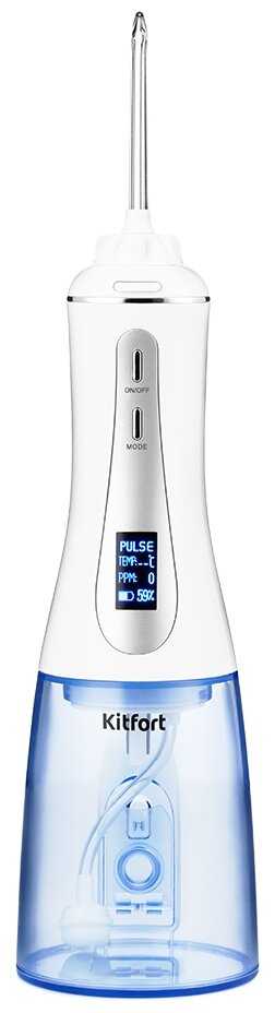 Нравится, что показывает на дисплее уровень зарядки, температуру и жесткость воды! Очень довольна, что из множества портативных ирригаторов выбрала именно этот! Спасибо Kitfort за такой качественный товар!