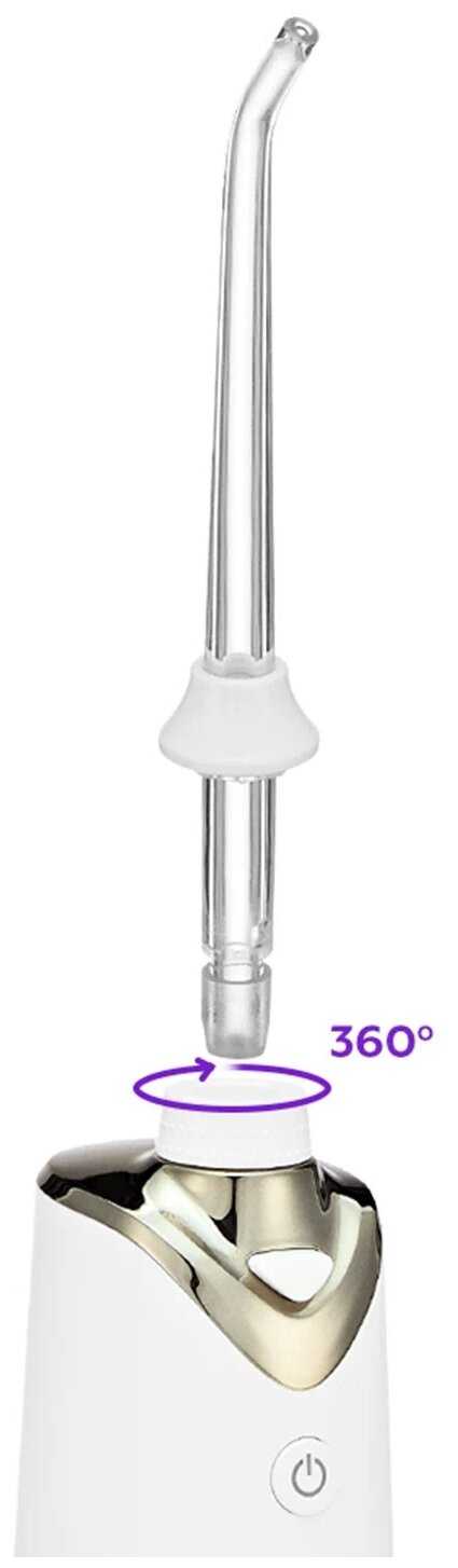 Ирригатор обладает высокой мощностью и позволяет регулировать интенсивность струи, что делает его идеальным для всех возрастных групп. Устройство эффективно и бережно очищает зубы и десны, справляется даже с труднодоступными местами.