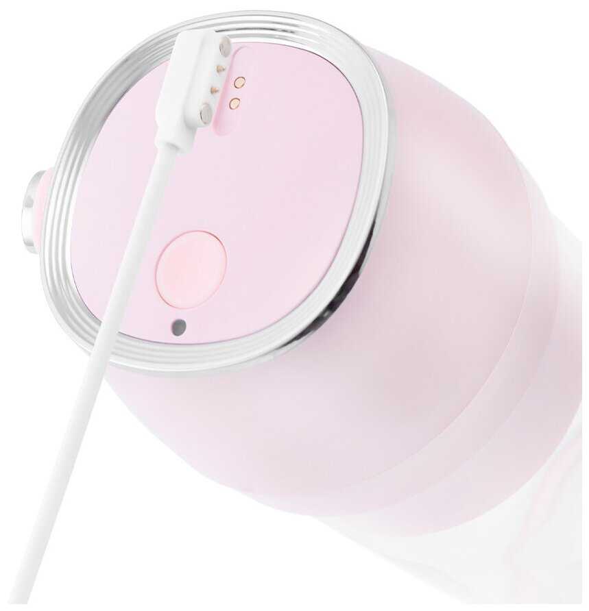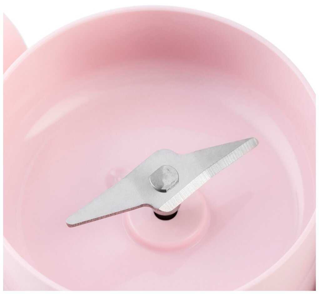 Портативный блендер в симпатичном дизайне. Отлично работает, минусов не увидели. надежно закручивается и не подтекает,можно брать с собой куда угодно, Прорезиненное дно,повышает устойчивость. Качественный пластик стакана и не хрупкий. Коктейль замешивает быстро . Можно положить ингредиенты,а когда понадобится,просто включить его. Детям можно делать коктейли с мороженным. Мы делаем протеиновый коктейль с фруктами и спорт питанием