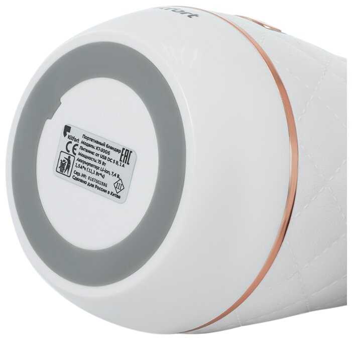 - + В настоящее время очень актуальным для всех стал здоровый образ жизни. Поскольку я довольно большое количество времени провожу на работе, для меня был актуальным вопрос полезного и правильного перекуса. Я просто обожаю вкусные смузи и детокс-коктейли, а блендер позволяет приготовить их без больших временных затрат. Искала небольшой портативный блендер для этих целей. Свой выбор остановила на фирме Kitfort. Модель KT-3006. Чем меня привлекла данная модель?! 1) девайс имеет маленькие размеры и помещается в сумке. 2) современный и стильный 3) встроенная бутылочка для транспортировки приготовленного напитка. 4) удобная система трансформации: сама бутылочка и часть блендера с ножами завинчиваются крышками, что добавляет удобства при транспортировке и эстетики. 5) корпус блендера выполнен из качественных материалов, а также интересна дизайнерская задумка самого корпуса блендера ( выполнена под искусственную стеганую кожу). Блендер имеет USB разъем для зарядки. В комплекте правда только шнур, без самой вилки. Но, я даже не отношу это к минусам, поскольку сейчас в каждом доме можно найти такую вилку. Само отверстие для зарядки закрывается резиновой заглушкой, что предотвращает попадание пыли и влаги. Как видите, все технически продумано. Моется блендер достаточно легко. Самое главное не залить порт зарядки. Но, поскольку блендер имеет функцию самоочистки, достаточно лишь сполоснуть нож водой для удаления остатков пищи или протереть нож влажной тряпкой. Сама чаша и крышки изготовлены из экологического пластика. Не смотря на миниатюрные размеры, блендер достаточно шустрый для такого малыша. Скорость вращения лезвий достигает 15000 об/мин. Вес составляет всего лишь 540 грамм. Время зарядки составляет около 2 часов. Время автономной работы весьма внушительное. Очень удобно брать с собой в фитнес зал или путешествие.