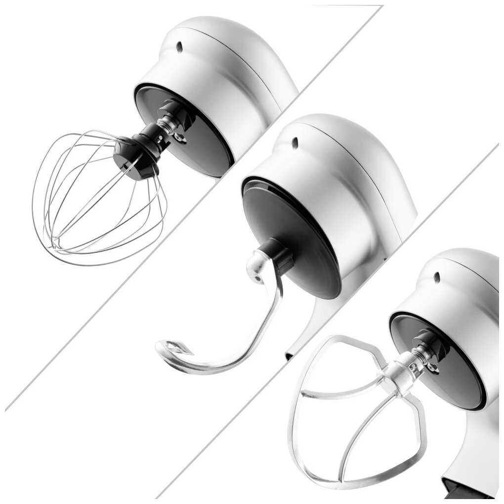 Кроме того, этот планетарный миксер оснащен большим 4,2-литровым нержавеющим стальным ковшом, который позволяет одновременно обрабатывать большое количество ингредиентов. Это идеально подходит при приготовлении больших партий теста или смеси для выпечки.