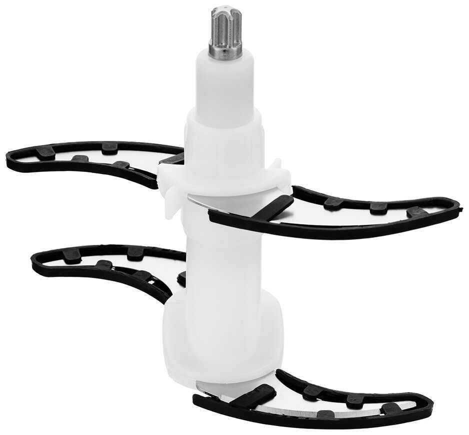 - Четыре ножа (два набора) обеспечивают равномерное рубление мяса, овощей, фруктов и зелени за 10-20 секунд, превращая куриную грудку в фарш или овощи в пюре.