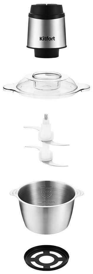 Острые ножи, расположенные на разных уровнях, благодаря которым продукты измельчаются быстро и равномерно.