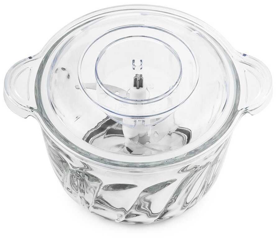 - + Главное достоинство этого измельчителя - вместительная чаша, целых 2,3 литра. Даже если учесть, что не получится эффективно использовать всю ёмкость, можно быстро и без лишних хлопот переработать большое количество продуктов.