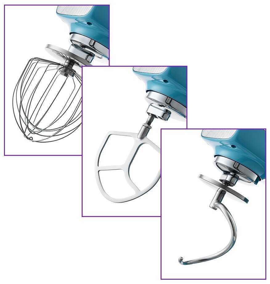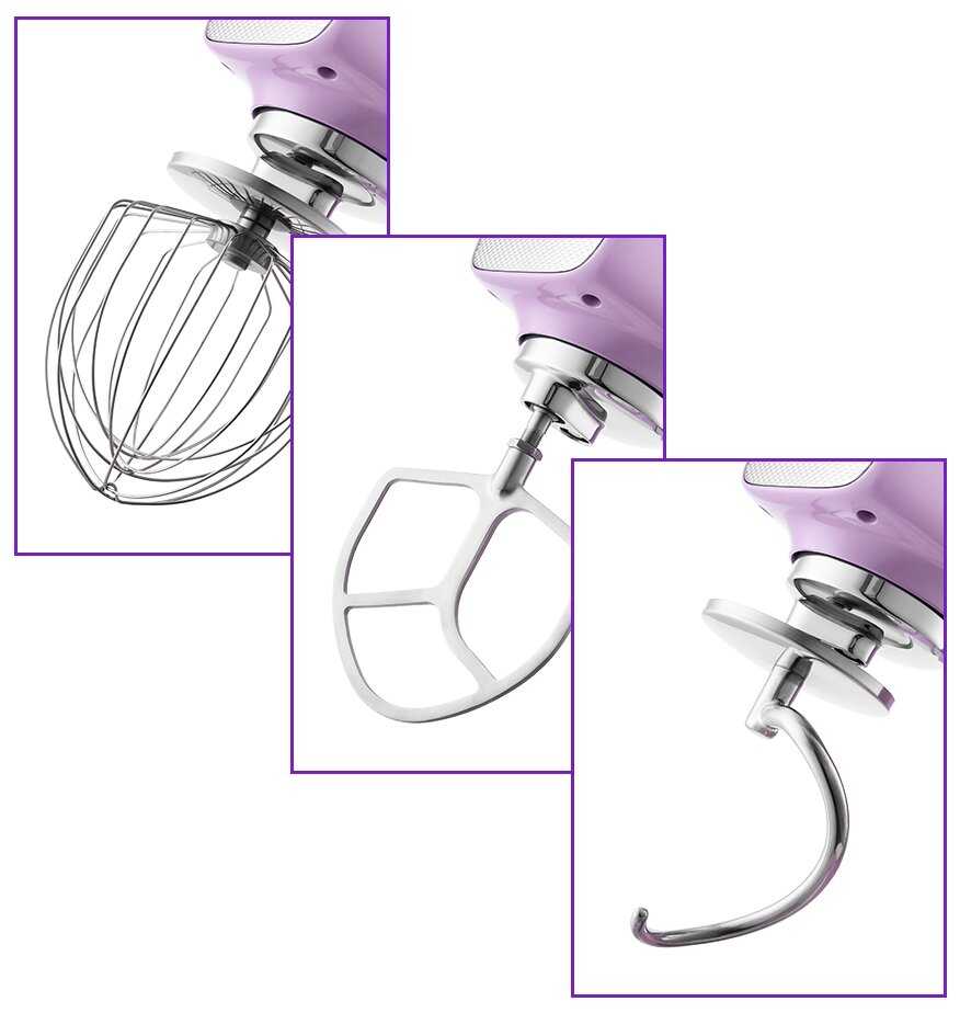 - Венчик, крюк и лопатка изготовлены из нержавеющей стали без пластиковых элементов, что исключает деформацию и ржавчину.
