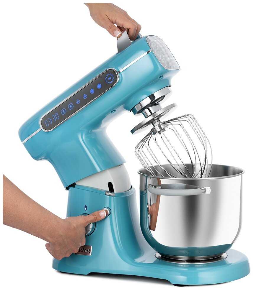Однако модель требует привыкания: добавление ингредиентов при активном взбивании затруднено из-за массивного венчика, а очистка его многоуровневой структуры может раздражать. Хрупкая пластиковая крышка и отсутствие в продаже дополнительных насадок (например, мясорубки) — явные минусы для тех, кто рассчитывает на расширение функционала. Габариты и вес (12 кг) делают миксер стационарным — перед покупкой стоит продумать его размещение.