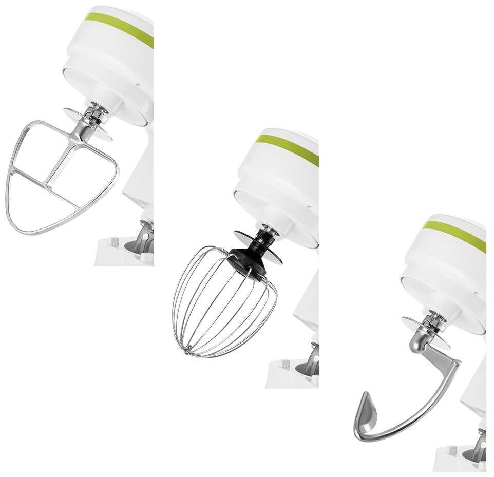 - Крюк для теста с дополнительной плоскостью: равномерно вымешивает крутое тесто, предотвращая наматывание на ось.