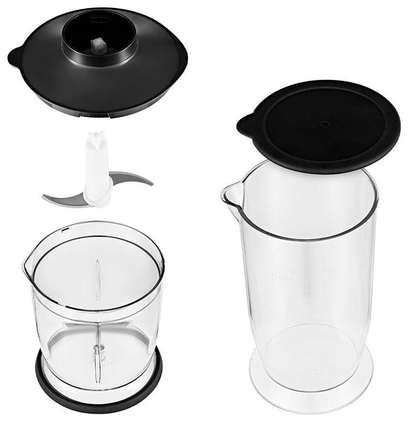 Ну в-четвертых, полный комплект: погружной блендер, венчик и измельчитель. У моего бывшего-то измельчитель еще несколько лет вышел из строя.