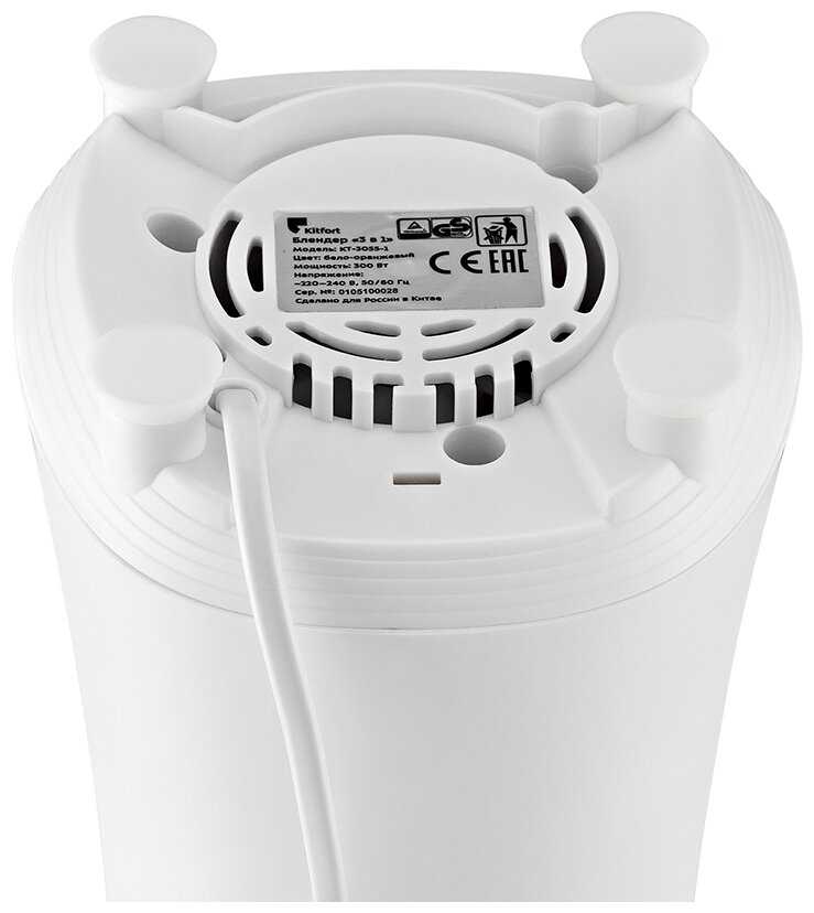 Особенности конструкции : | нескользящие ножки, отверстие для ингредиентов, отсек для шнура |
