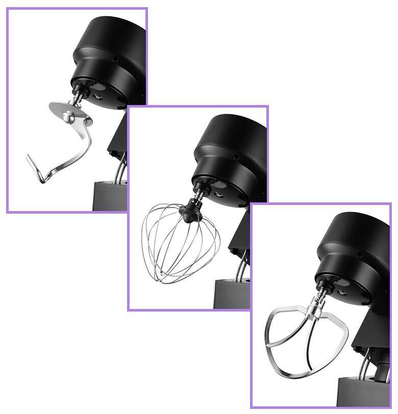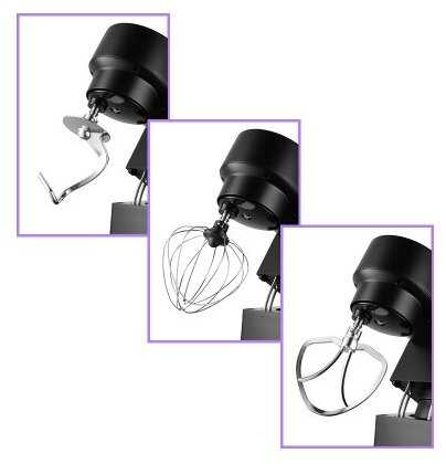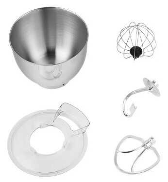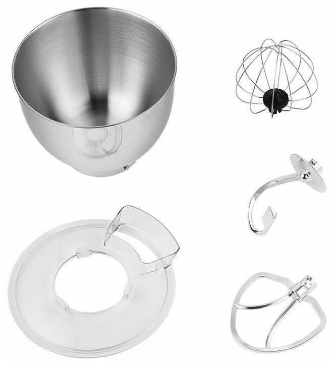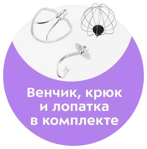 - Насадки (венчик, крюк для теста, лопатка) снимаются одним движением.