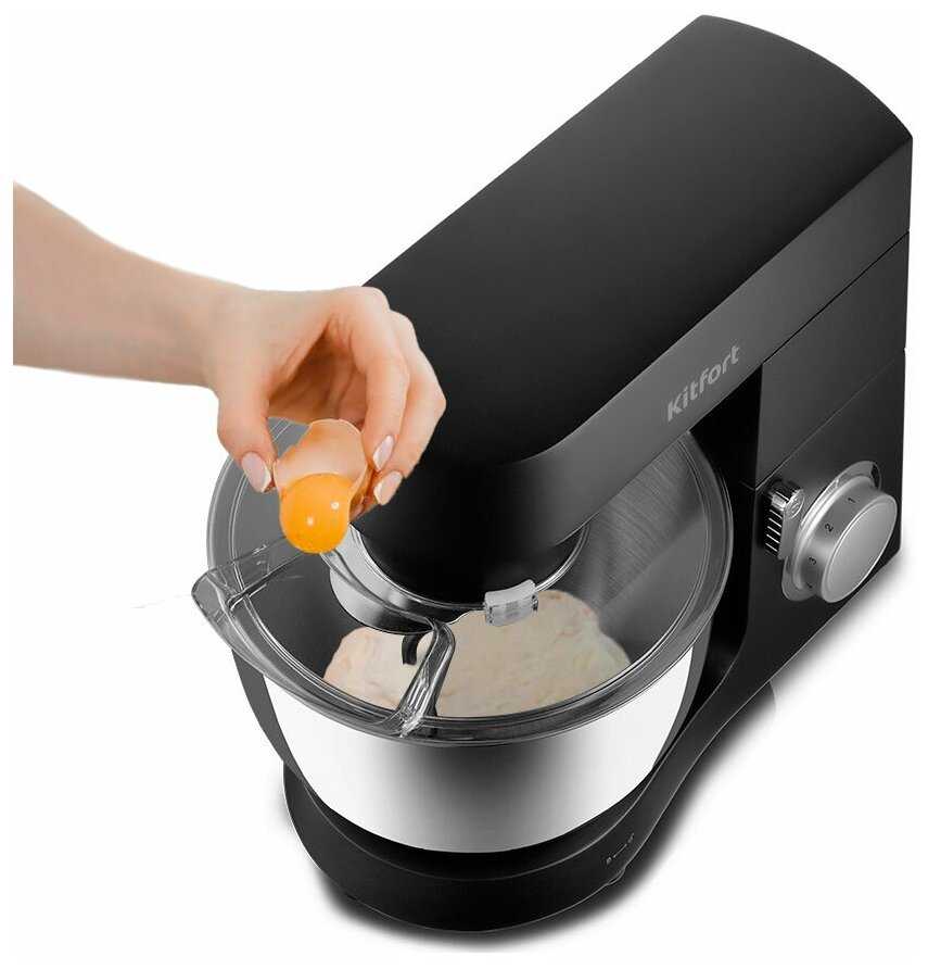 - Муку по краям чаши приходится сдвигать вручную на низких скоростях.