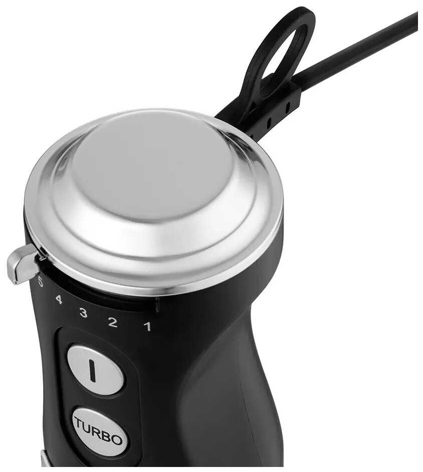 Отличный блендер. Понравился дизайн, удобен в работе, так как есть 5 скоростей, с удобным переключателем. Блендер с металлической погружной частью, очень удобно работать с горячими продуктами. Очень понравился длинный шнур