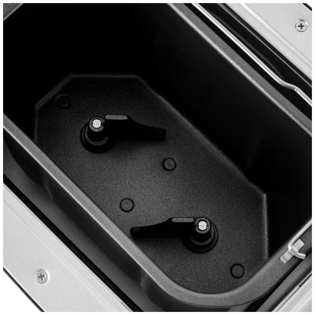 - + Проста в использовании, понятная книга с советами, 2 замешивателя теста, стильный дизайн хлебопечи.