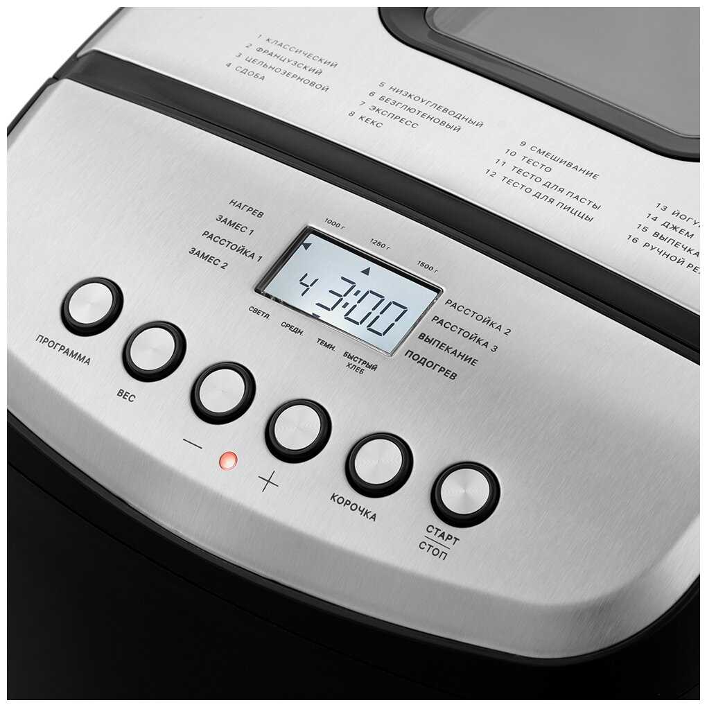 - Функция выбора веса (1–1.5 кг) и цвета корочки (светлая/средняя/темная).