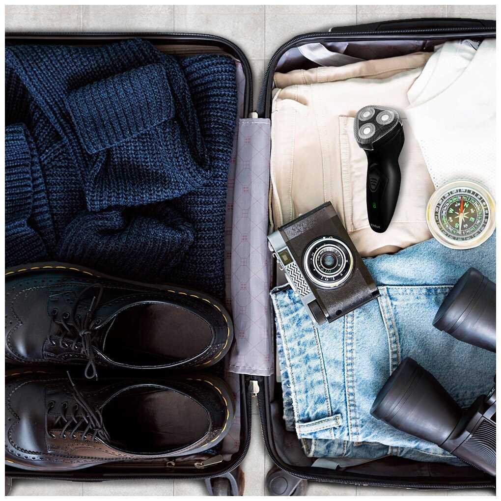 - + Электробритва легкая и компактная. Сразу три бреющие головки, которые достойно справляются с щетиной, в том числе не самой густой и мягкой, растущей в разных направлениях. Заряда хватает на долго. Есть триммер.