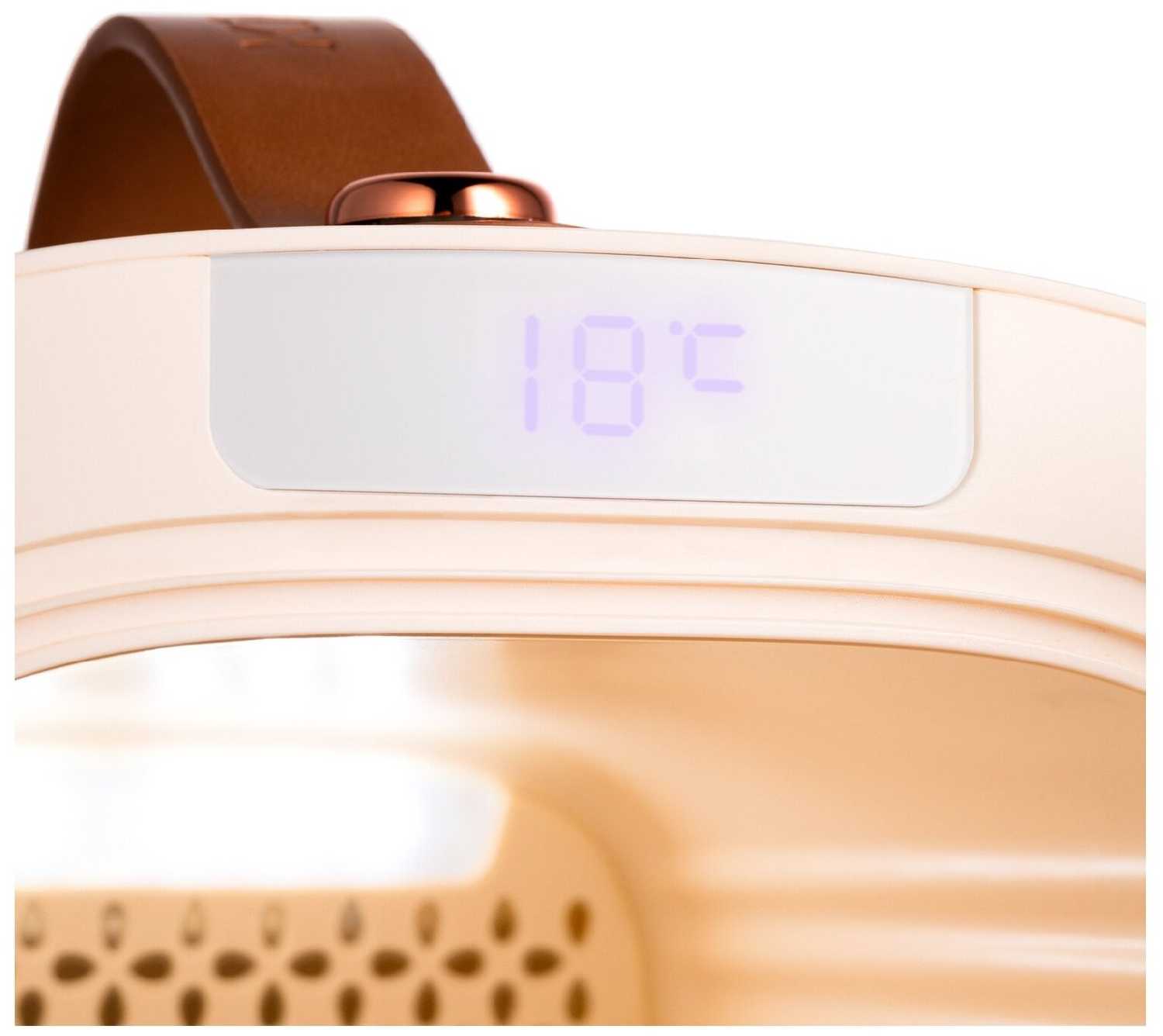 - + Красивый, компактный, идеально для интерьера! У меня стоит в ванной. В комнате будет смотреться тоже отлично! Два температурных режима. Хорошо держит холод. Словила все необходимое для ухода. Тихий режим. Есть подсветка - это очень удобно, можно не включать свет в ванной)). Датчик температуры. Летом будет супер брать с собой!