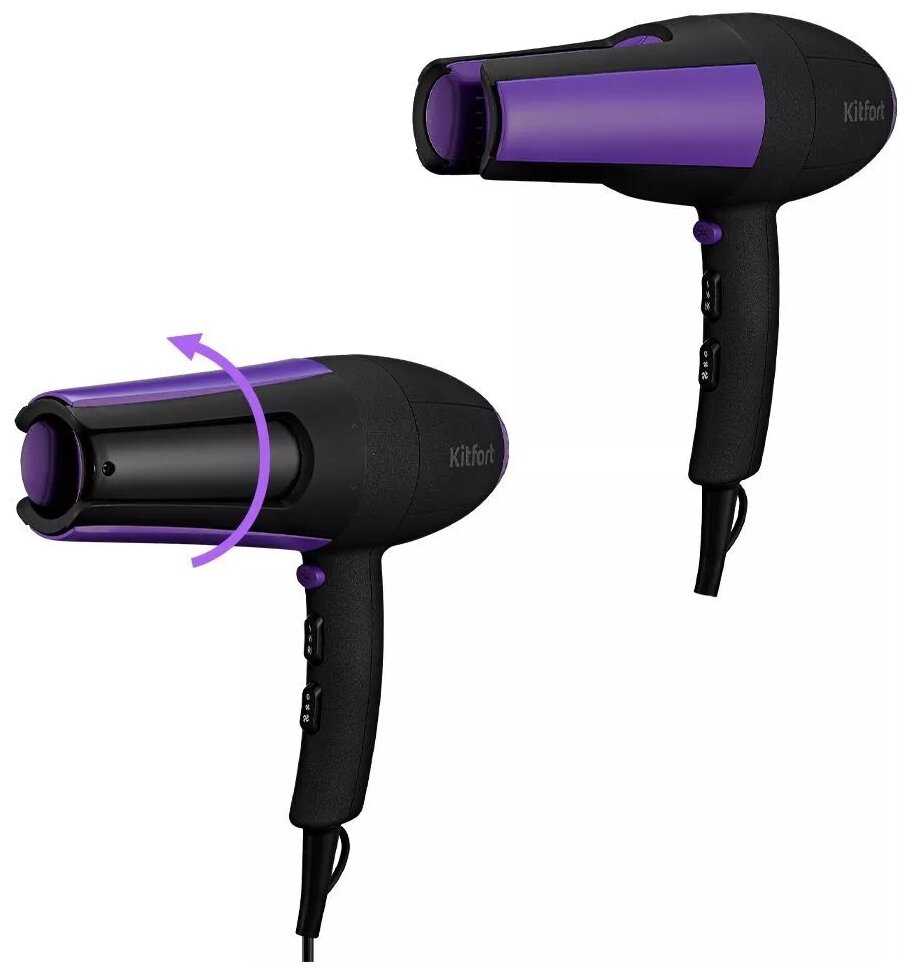 Работает в двух режимах, сначала не поняли как переключать, но немного подумав всё стало понятно. Много режимов с удобным расположением кнопок. Мощности хватает на быструю сушку с утра. Так же очень понравилась расцветка черного в сочетании с фиолетовым.