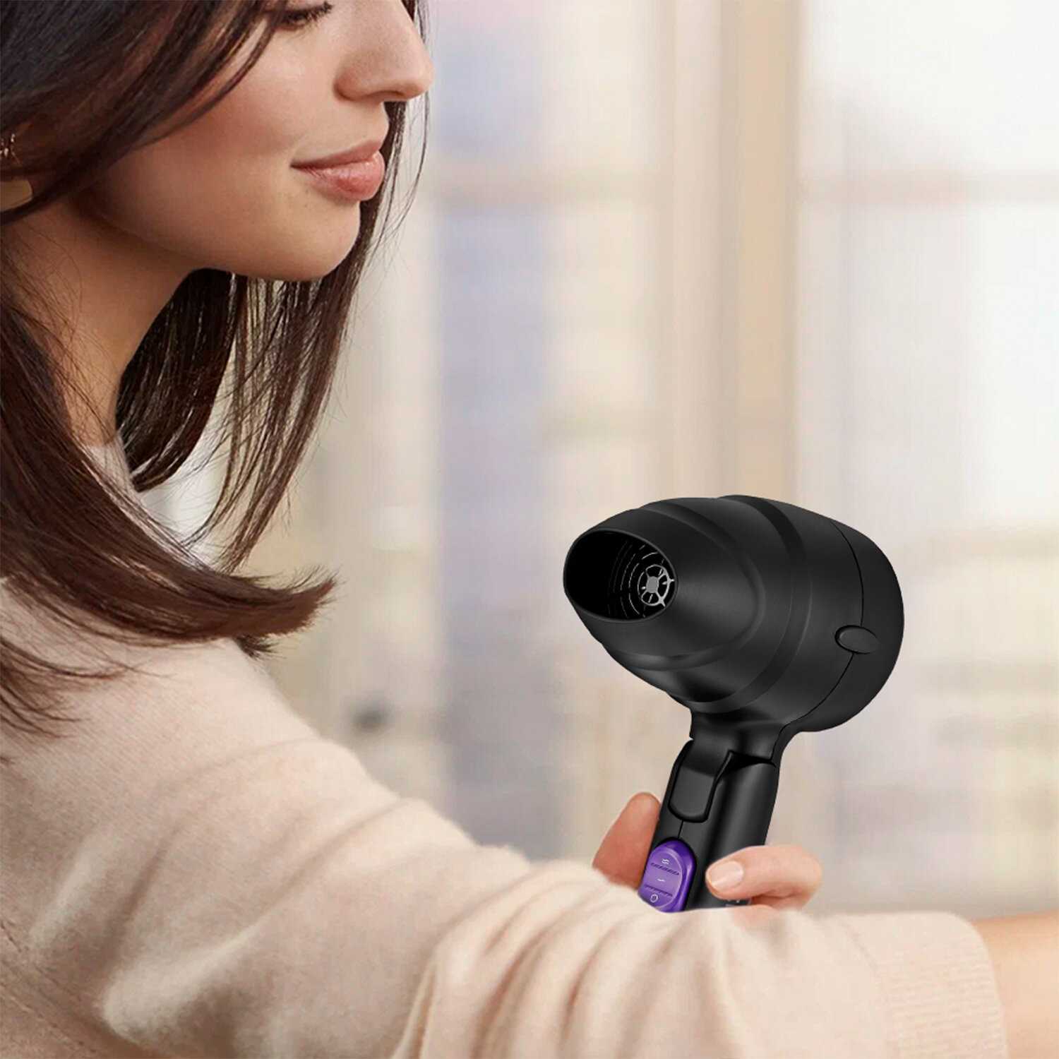 Фен решила взять исключительно для работы,и ни капельки не жалею! Фен очень удобен за счёт слаживания ,легкий ,компактный(что очень важно)Идеально подходит для дамской сумочки.Очень прост в использовании,не шумный,не пересушивает волос.Волос после сушки не электризуется.Достаточно мощный.Я очень довольна покупкой! Буду рекомендовать друзьям и знакомым.