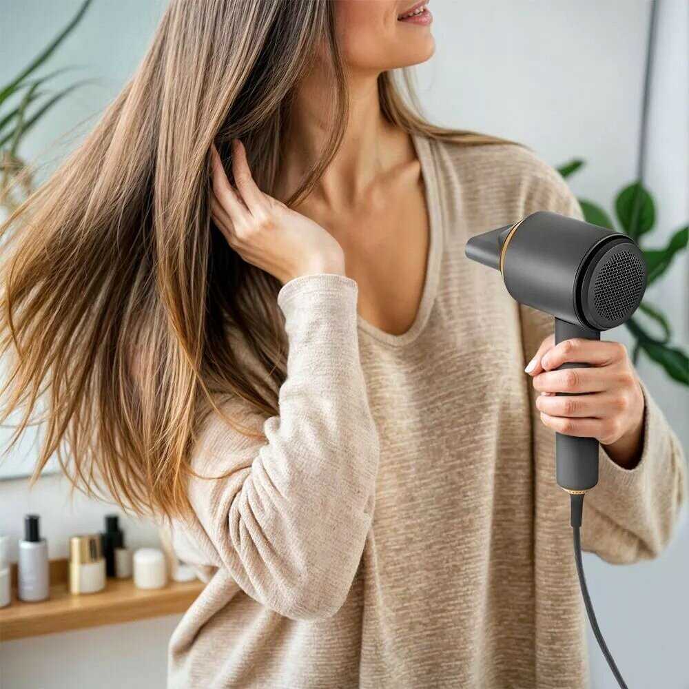 - + Компактный фен, не тяжелый, современный и симпатичный дизайн.