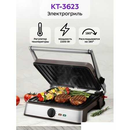 Покупаю электрогриль Китфорт уже второй раз, первый прослужил 5 лет, поверхность со временем стёрлась (может,мыла неправильно) и еда стала пригорать. Не раздумывая, взяла той же фирмы. У этой модели есть ряд преимущств: можно зафиксировать верхнюю крышку, например при приготовлении/разогреве пиццы, удобный съемный поддон снизу и возможность раскрывать на 180°. Выглядит стильно, но для моей маленькой кухоньки великоват. Покупкой очень довольна, рекомендую👍