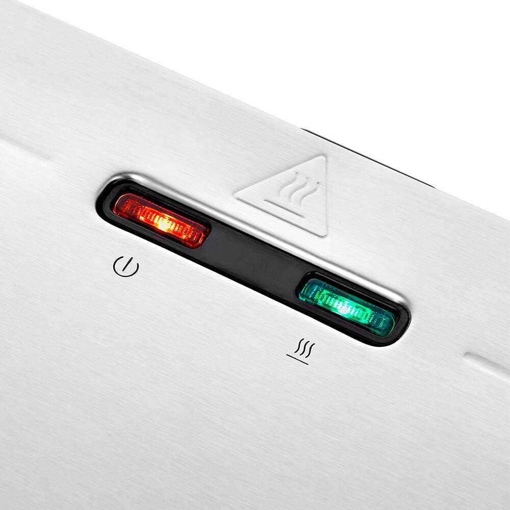 - + Отличный гриль! Хорошо прогревает,равномерно. Размер тоже хороший,можно сразу несколько бутербродов приготовить.