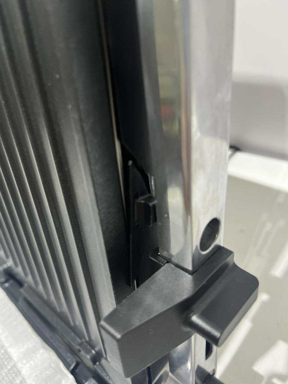 Очень плохое качество сборки, маленькое пятно контакта с нагревателем (во вложении фото с маленькой точкой), из-за этого через раз верхняя панель переставала греть, приходилось постоянно подтыкивать, иначе гриль падал в ошибку. Очень плохо панели подходят к месту крепления, так очень плохо фиксируются.