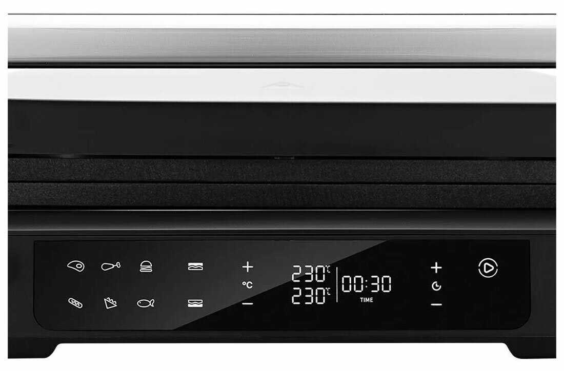 Сенсорный дисплей интуитивно понятен, а наличие готовых программ (мясо, птица, рыба) избавляет от необходимости подбирать температуру и время вручную. Однако при использовании ручного режима сенсорное переключение параметров может показаться не таким удобным, как механические кнопки, из-за необходимости多次ных нажатий. Цифры на дисплее верхней панели могут быть частично не видны под определенным углом. -