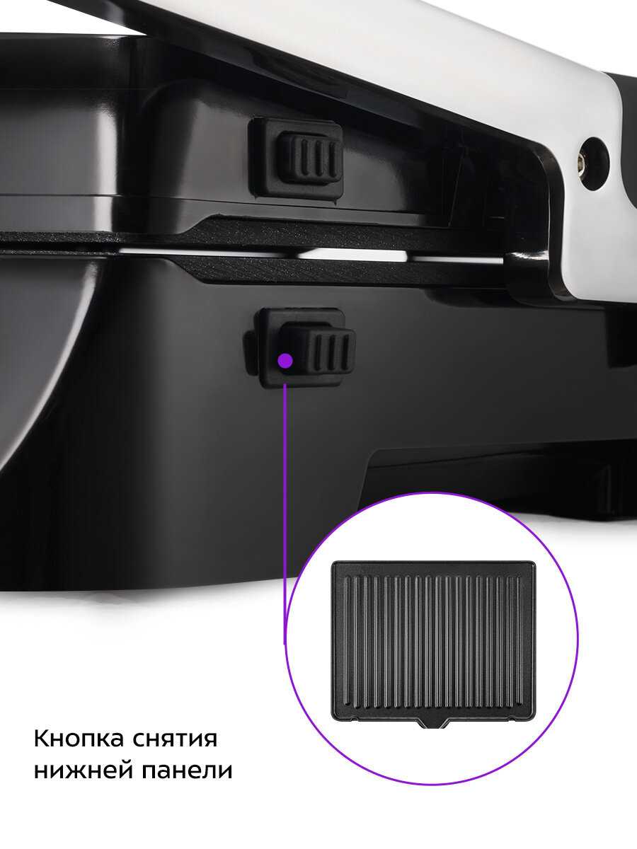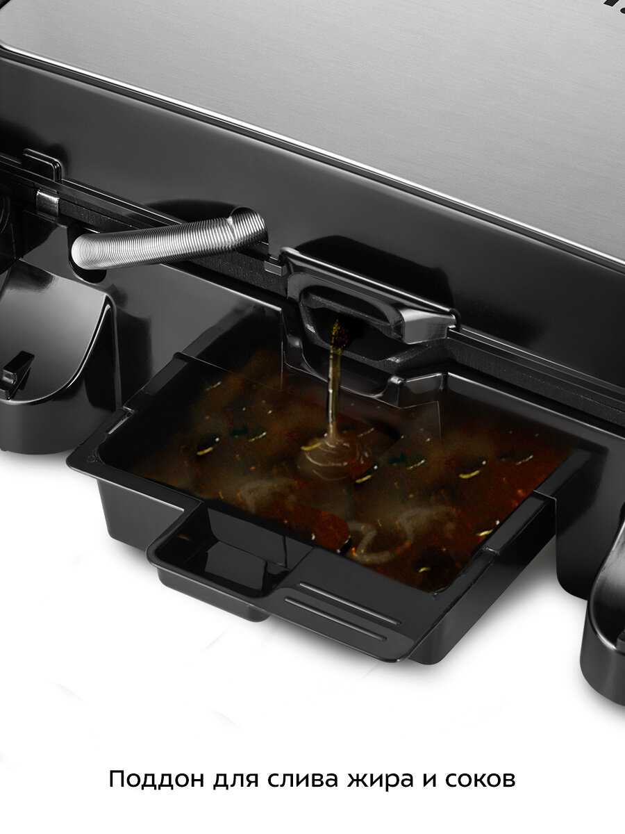 | Особенности : | антипригарное покрытие, крышка, поддон для сбора жира, съемные пластины |