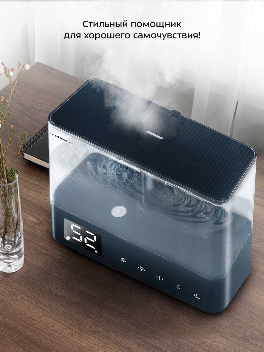 Пять литров даёт возможность заливать воду не так часто, как в некоторых моделях поменьше. - - Под увлажнителем бывает скапливается вода, но это не критично.