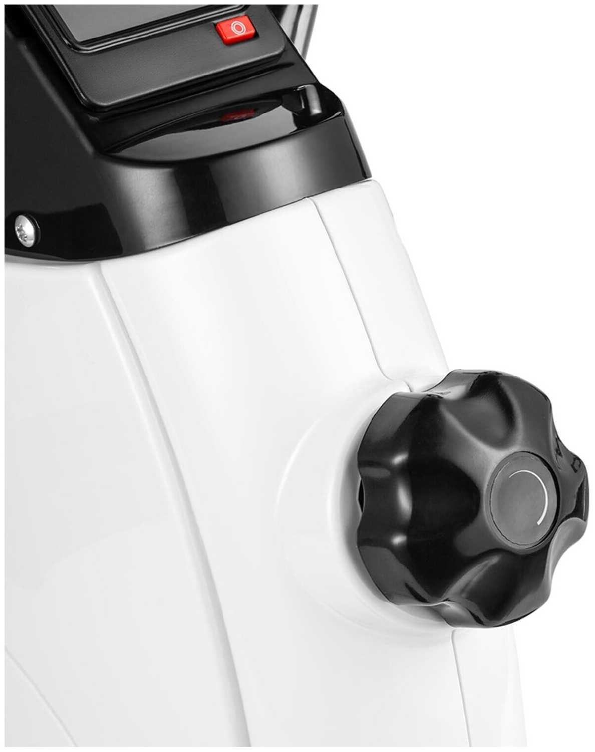 Ключевой особенностью является механическая система нагрузки с ременной передачей и 8-ступенчатой регулировкой сопротивления. Однако в отзывах неоднократно упоминается неравномерность хода: педали вращаются рывками, особенно на высоких нагрузках, что требует дополнительной смазки узлов трения (кривошипа, мест крепления педалей). Встроенный LCD-дисплей отображает время, условную дистанцию (в км), счётчик оборотов и калорий, но часть пользователей отмечает погрешности в расчётах и проблемы с обнулением данных. Автоматическое отключение экрана при бездействии экономит заряд батарейки типа CR2032 (входит в комплект). Серьёзный недостаток — нагрев металлических элементов педалей и кривошипа после 15-20 минут использования, о котором предупреждают несколько респондентов.