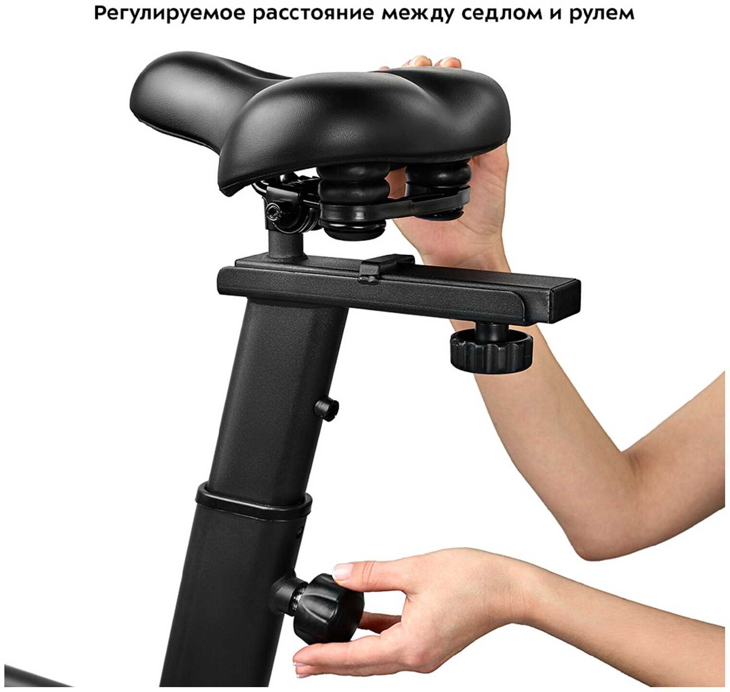 Регулировка сиденья и руля позволяет настроить тренажер под любой рост, что делает его удобным.